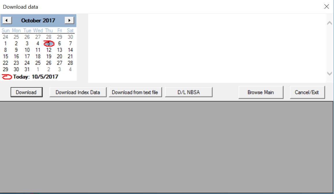 Klik Download untuk download data dari link BEI (yg disimpan di idx.ini file) setelah mengklik tanggal yg ingin di download.