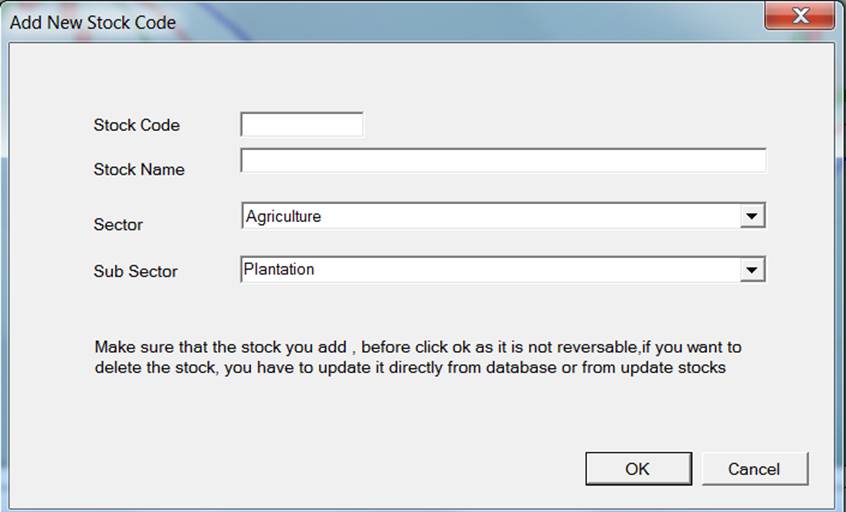 Silahkan masukkan kode stok, nama stok, sector dan subsector untuk menambahkan emiten baru.